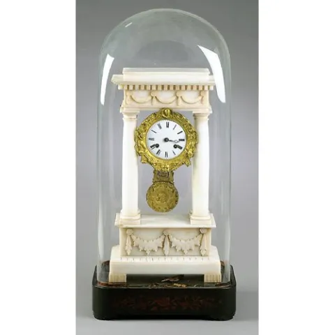 Gilt and Alabaster French Clock Under Dome,