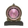 watch works, bronze round case set on ebonized wood plinth with cast sunflower brackets. Engine-turned dial with metallic pink ground, black number r...