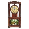 8-day, weight-driven, brass works with riveted brass straps instead of plates, type developed by Joseph Ives. Round gilt dial, painted Arabic numbers...