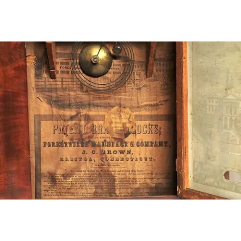 Bristol, Conn. Ogee Shelf Clock, with original label of Brown's Forestville Mfg. Co., and signed 30-hour time and strike, weight-driven, brass works....