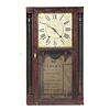 30-hour time and strike, weight-driven, wooden movement. Painted wooden dial with gilt scrollwork and Roman numerals. Mahogany ebonized half column ca...