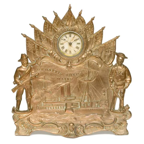 Rare Cast Bronze U.S.S. Maine Commemorative Novelty Clock,