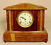 in oak. With arched pediment with floral carving and rococo finial, classical columns, and scroll-cut sidelights. Case has floral and rococo carving a...