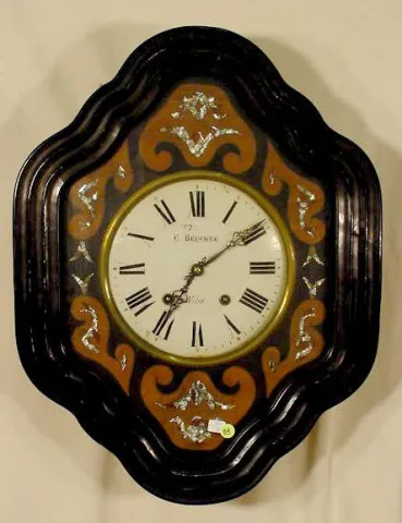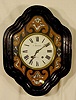 30 day double spring driven time, strike, day of the week and month brass movement with printed paper dials on single piece of tin, both in Roman num...