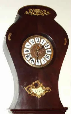 Condition: an interesting 3-piece tall clock with ormolu mounts, in the style of 1745 (with plaque bearing that date). The case is dark walnut veneer ...