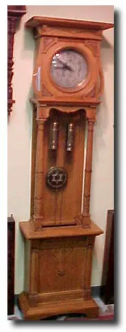 Art Nouveau style Grandfather clock. Made by Kienzle Clock of -Germany c1910... Beautiful brass weights and silver dial. Eight day movement strikes th...