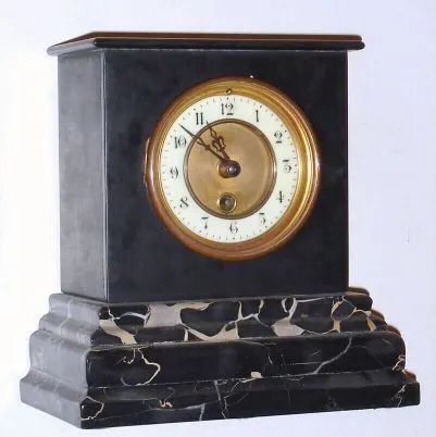 This looks to be a black marble case now mounted onto a later fancy marble base (nicely made). Original porcelain dial is perfect and the hands are or...
