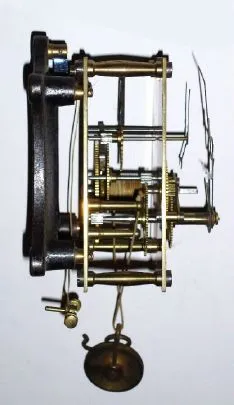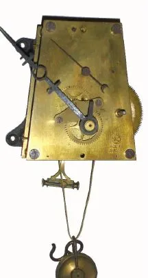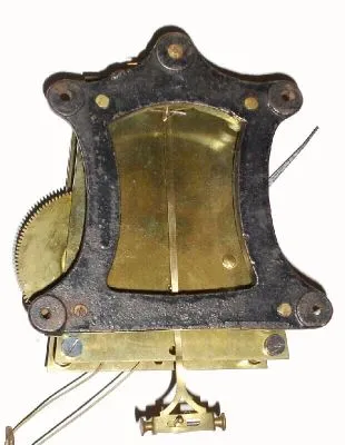 Movement only, Seth Thomas movement No. 62, as used for Regulators No 3 and 7, keystone plate, for pendulum (not included) length 26.7" from handshaft to tip of rating screw. With iron bracket. C.1900.