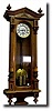 Eight day brass two weight movement with hour and half hour strike. It has a walnut case with columns and porcelain dial. Dimensions: 48"h x 17"w x 8"...