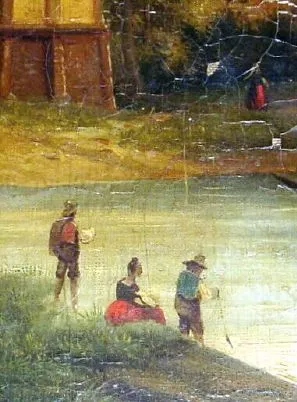French, Picture Clock, the tiny dial showing as the tower dial in the oil on canvas painting, gong strike, C.1860.