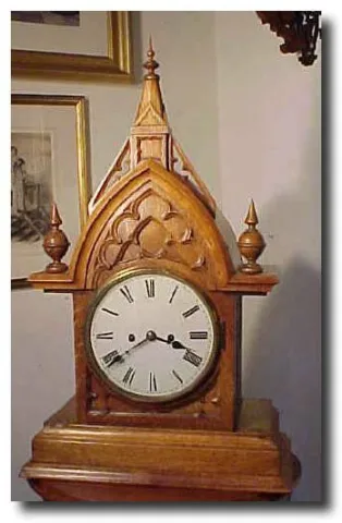 Twin fusee movement unsigned but probably a north country clockmaker of good quality. Striking on a gong. Condition excellent, the 'Puginesque' case very good. Movement restored and in full working order. Height 27inch. Additional keywords: mantle, mantel, shelf