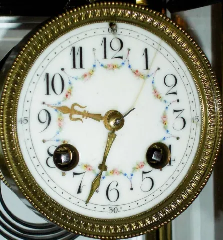 there is a fine hairline on the porcelain dial between the center and 1 o'clock, and a short one above 12. Otherwise this clock is in very good origin...