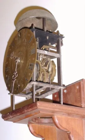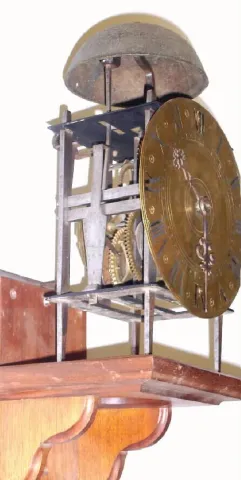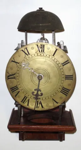 French, Lantern clock, c.1790, with a dial and minute hand C.1890, less pendulum and weight. Has anchor escapement and count wheel striking, 1-day
