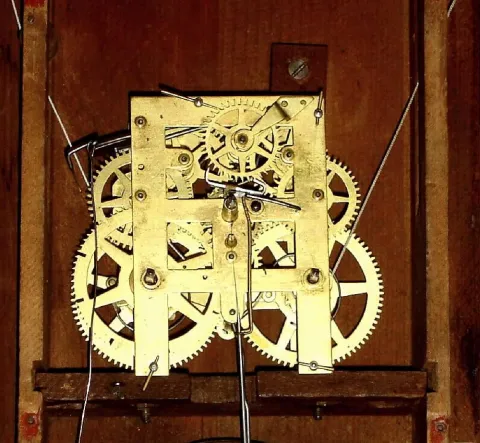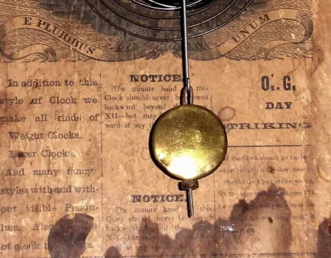 New Haven Clock Co., Circa 1865, mini 2-weight, 30-hour time/strike brass movement small size OG shelf clock.