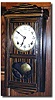 Japanese 8 Day Time and Strike in Hand Grained Case Japanese 8 day time strike wall clock with hand grained finish. The movement is a nice copy of an American movement. Overall size is 18 1/2" tall, 9 1/4" wide, 5" dial. Was overhauled 4 years ago, runs well. The person we bought this from said there is an identical clock in a museum in Hiroshima. Made about the year 1900. One year warranty. Has some scratches and indentations in the finish and there used to be a presentation plaque at the top. Has a two inch long narrow chip in the left side of the case.