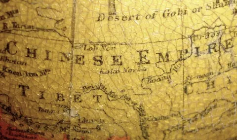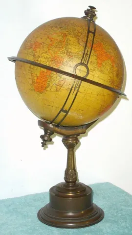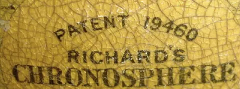 French, for the English market, C.1910, RICHARD'S CHRONOSPHERE {time globe}, made up of 12 lithographed gores applied to a 7.5" metal sphere, showing Patent 19460, various early 19th C. depictions such as 'Russian Empire' and 'Chinese Empire', the oceans