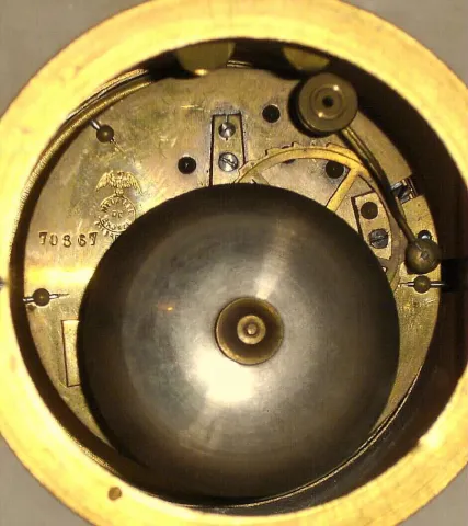 ticks and strikes, pendulum needs slight adjustment, the case is in good condition with one small chip in the bottom left hand corner of the base and ...