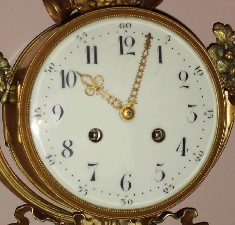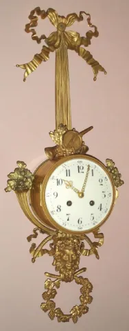 French, Gilt brass cartel clock, Louis XVI style, C.1870 in the style of a century earlier, 8-day bell strike.
