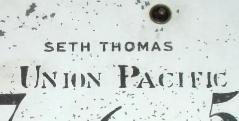 there is some flaking on the original dial; the gold on the tablet has been touched up, some touch up on Union Pacific and Seth Thomas on dial. Otherw...