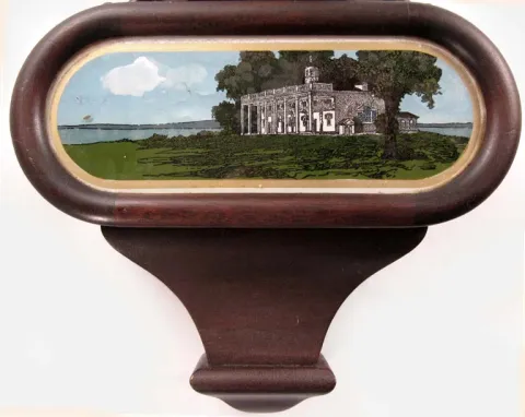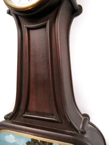 Solid mahogany case without any flaws and with a dusty original finish. The porcelain dial is perfect and signed. The Mount Vernon painted tablet does...