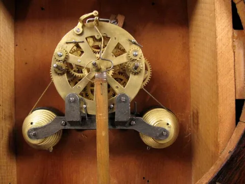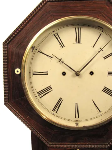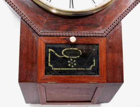Thus reads the label on this fine clock. This clock has a rosewood case with ripple moldings, as it should and it retains both ivory knobs. It has bee...
