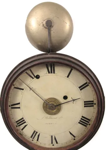 Rare early banjo clock with external alarm bell.