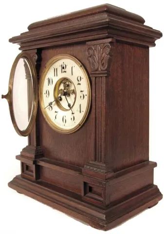Waterbury "Suffolk" oak cabinet clock