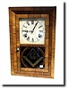 Spring driven, eight day clock. Fully restored;16 inches high and 10 1/4 inches wide. It has a replaced paper roman numeral dial. The unusual aspect of this clock is the reverse painted Mason's Glass. Additional keywords: table, mantel, mantle