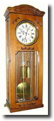 movement, now in a C.1930 made-to-order solid ash case with etched glass in the door; the door hung with a full length piano hinge. The movement is mounted on 2 blocks of wood in the case back. Although the case is not so old, it looks fine and the movement is clean and running. Height 34" $300-500