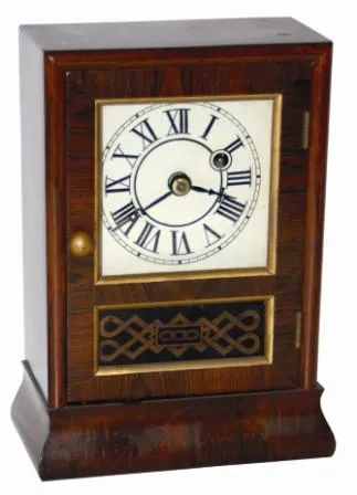 One day time only, O-Type movement. The dial was repainted, it has S T hands, and a small brass bob and key. Very good label inside is signed, "Seth T...
