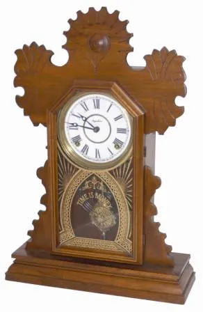 E. Ingraham Clock Co. walnut parlor clock, "Tulip", ca 1895.