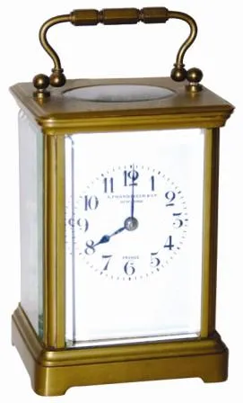 French Carriage clock, 8 day time and strike. The movement is signed, "Duverdrey and Bloquel / France / 11, Eleven Jewels".