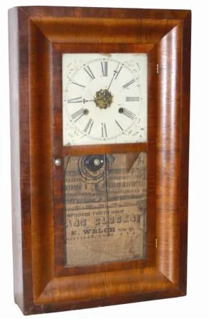 Two tone mahogany veneer used on this 26" high early case. It has some faults, of which veneer is not one. The bottom glass is new, there are no OG we...