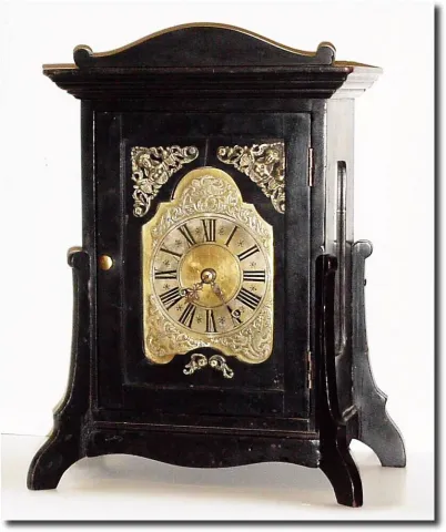 Uses an interesting system of cams and spring loaded arbors to switch between the 2 bells. With early tic-tac escapement, spanning 3 teeth, the back plate engraved along the perimeter and the name: "J"n Anderton, London 912' (this is Not an English movement), now in a C.1920 purpose made case for the movement. The original silvered brass dial with finely engraved mythological, long necked birds. All with a good look and running; Height 15'