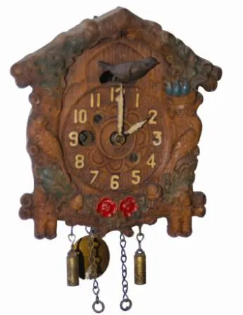 Mother bird is not blue, babies are, she is now silver, she swings back and forth feeding her birds when the pendulum is in motion. Case is good, has ...
