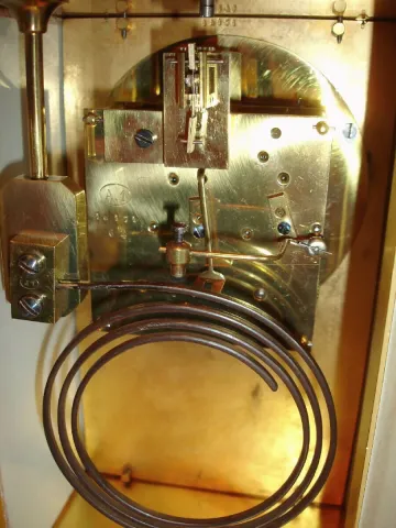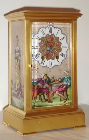 Beautifully restored brass case in very fine condition. Original painted panels are in perfect condition. Hands are original. Beveled glass panel on t...