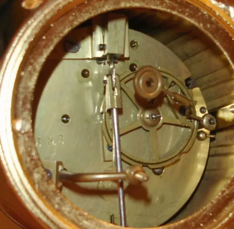 Gilt and marble case in nicely restored condition. All the cast pieces on the case have been gold plated which makes for a very bright finish. These p...