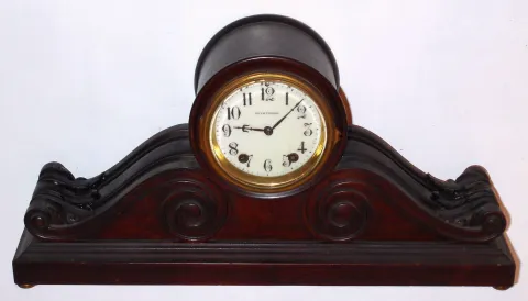Seth Thomas Clock Co., Thomaston, Conn., C. 1915, "Tambour", 8-day time/strike tambour style mantel clock.