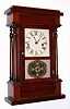 Seth Thomas, Plymouth Hollow, Conn., C. 1850, 30-hour time/strike miniature 4-column "New York style" mahogany veneered shelf clock.