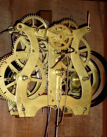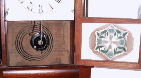 Refinished mahogany veneered case in very nice clean condition. Original painted dial is very nice with some minor paint loss at the mounting pins and...