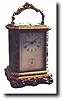 Rococo Case Carriage Clock Brass rococo brass case with handle of mermaids. 8-day movement with time, strike, alarm, and repeat. Sweep second hand. Dimensions: 6"h x 3"w x 3"d