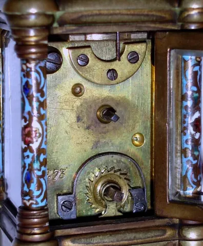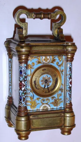 French, Brass and Champleve enamel case miniature carriage timepiece, C. 1900