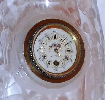 Decorative porcelain dial is perfect and the hands are original. Glass vase is perfect. Ht. 9"....