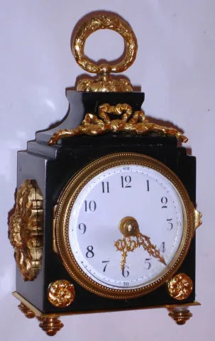 French, "Pendule d'officier", 8-day dore bronze travel timepiece. These timepieces are copies of the type made in the 18th and early 19th century fitted with a platform escapement like those used in a carriage clock, c1900