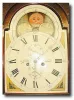 Flat topped Cuban mahogany break arch painted dial English longcase clock with leafy carved blind fretwork to hood, staggered twisted mahogany columns to hood. 8-day painted dial movement with masonic sectors to corner spandrels. Painted moonroller disc with scene of galleon at sea and country cottage scene. Painted globes below breakarch, Circa 1830. Maker "John P Campbell", Govan, Glasgow. 82" x 20" x 10" Additional keywords: longcase, tallcase, grandfather