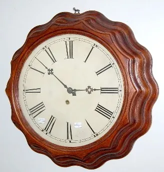 Ingraham Corrugated Wall Hanging Clock: time only; metal dial; 14" dial. (Replaced back.) 24" diameter...