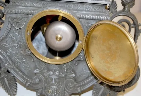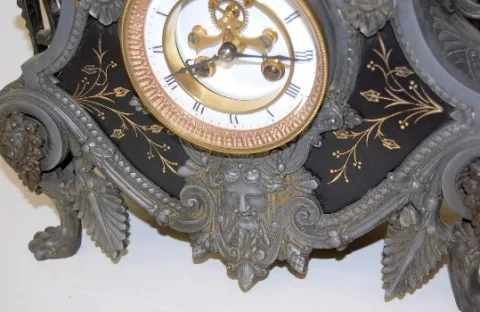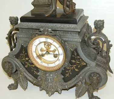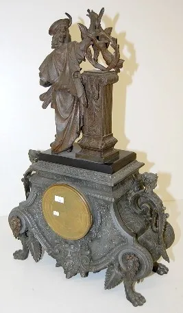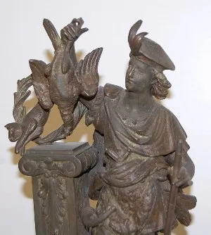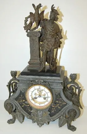 French Marble and Bronze Hunter Statue Clock