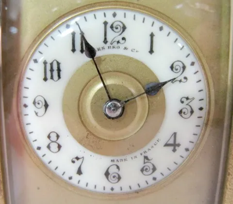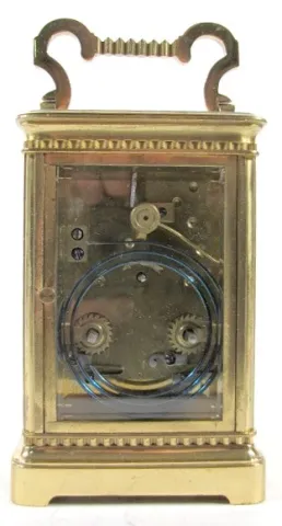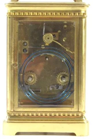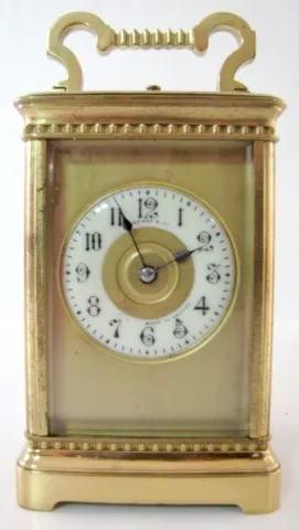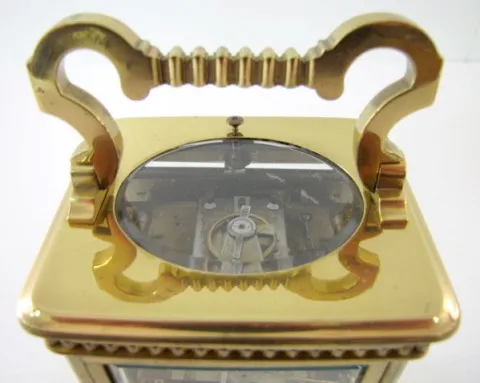 Gilks 8 Day French Repeater Carriage Clock: dial signed Gilks, Made in France; 8 day; repeater; porcelain and brass dial; Arabic numerals; beveled gla...