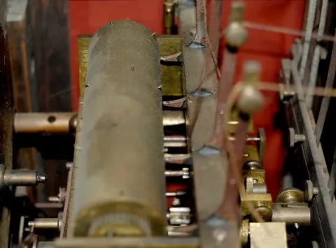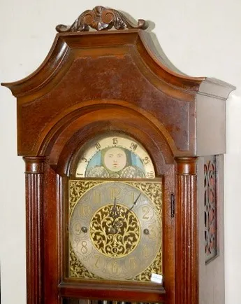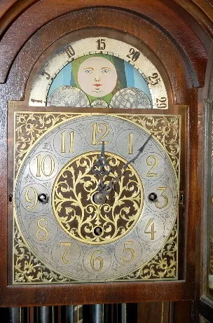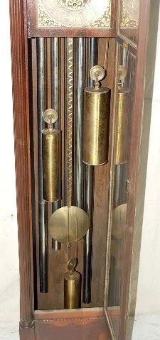 2 Wt. Colonial Mfg. Grandmother Clock: case made in Grand Rapids, MI; clock manufactured in Zeeland, MI.; 3 weights, 5 tube strike; moon phase. (Case ...