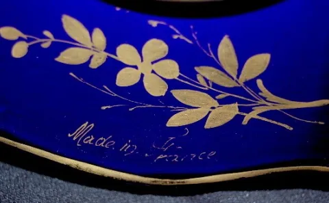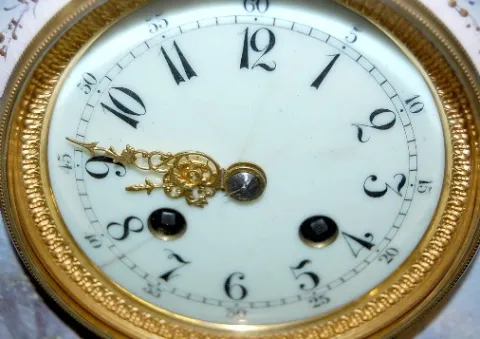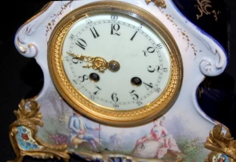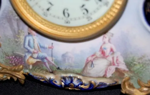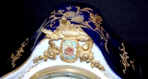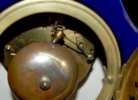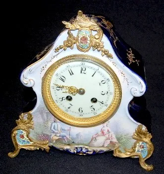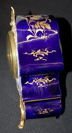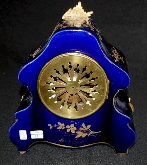 Marti French Porcelain Clock: movement signed Marti 1889 and numbered 1152; cobalt case with Made in France painted on the back; time and strike with ...